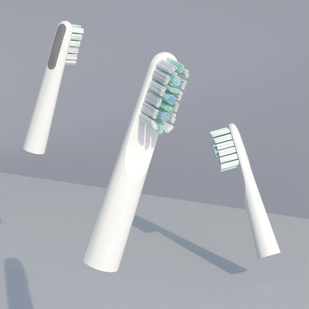 Pre dosiahnutie optimálnych výsledkov odporúčame hlavicu sonickej zubnej kefky vymieňať každé 2–3 mesiace. Samozrejme ich nájdete aj v ponuke „PureSmile“. Sú vysokokvalitné a navrhnuté tak, aby odstránili 20-krát viac zubného plaku ako bežná hlavica zubnej kefky. Majú jedinečnú veľkosť a sú tenšie, takže sa zbavíte aj ťažko dostupného zubného plaku. Navyše sú vyrobené z recyklovateľného plastu, čo z nich robí oveľa ekologickejšiu voľbu.