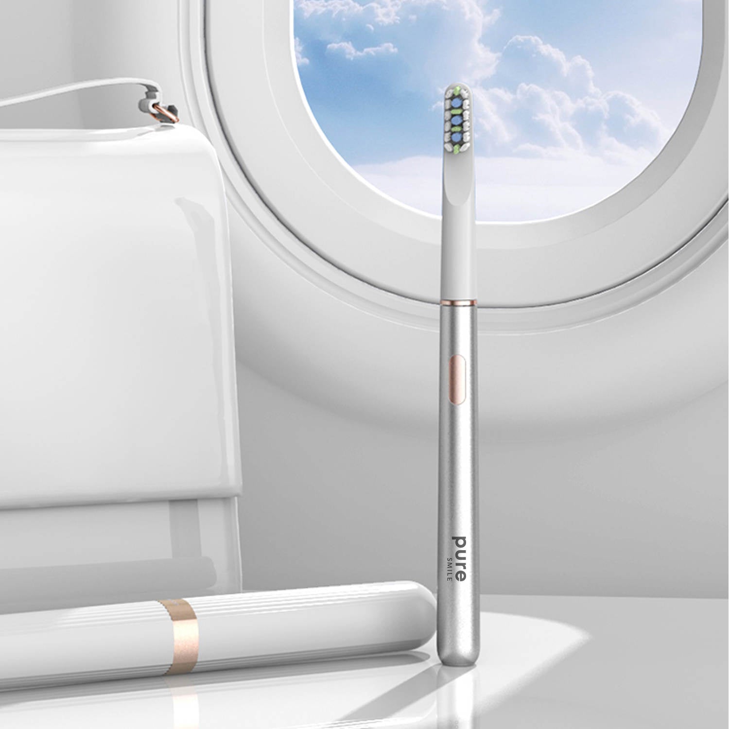 Telo zubnej kefky je vyrobené z vysoko kvalitného hliníka a je úplne vodotesné, takže si ju môžete vziať so sebou do sprchy. Hliník je odolný, trvanlivý materiál, ktorý je príjemný na dotyk. PureSmile používa vo svojich produktoch iba kvalitné materiály.