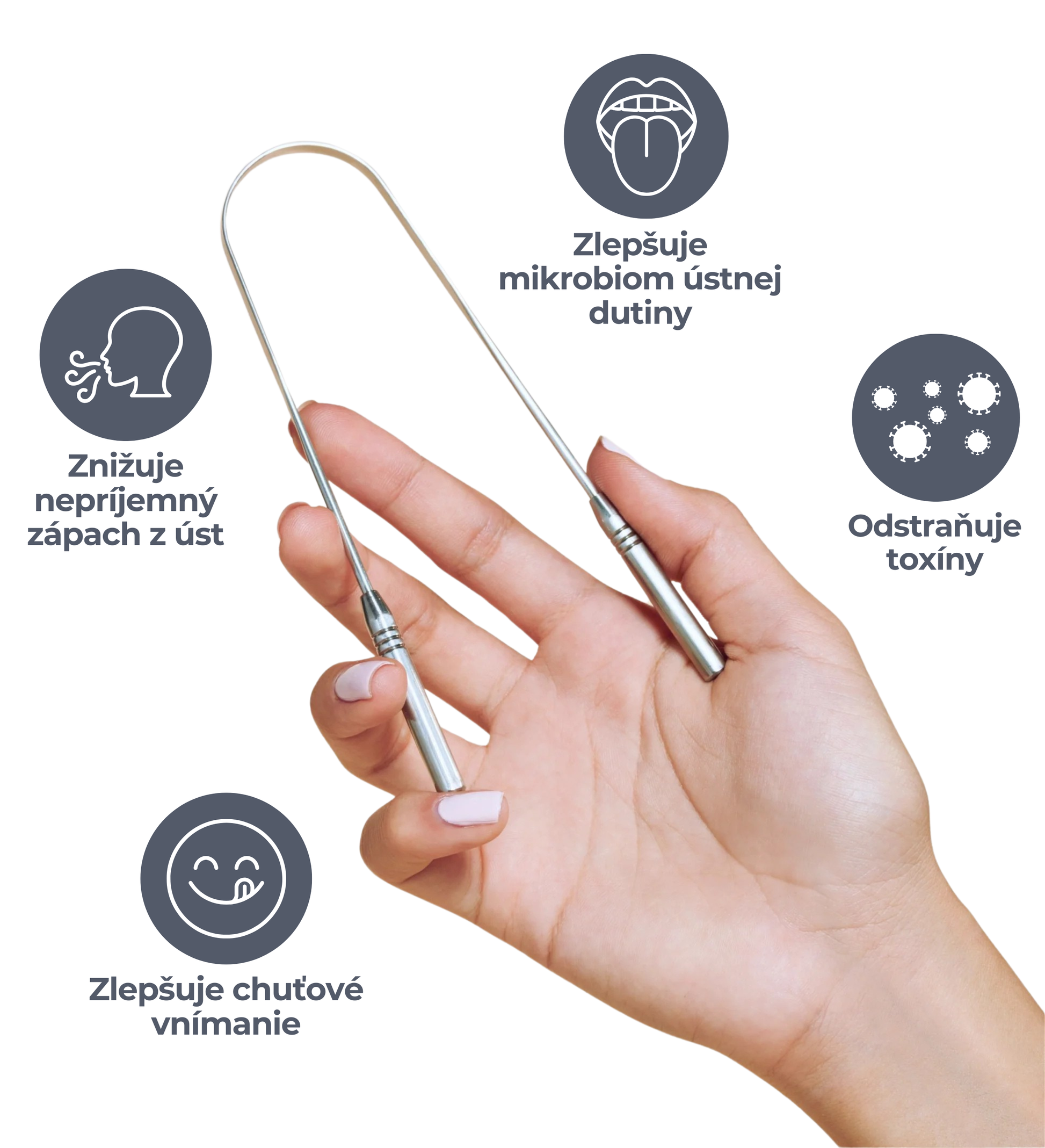 Lepšia hygiena ústnej dutiny: Odstraňuje povlak, baktérie a zvyšky jedla z povrchu jazyka.